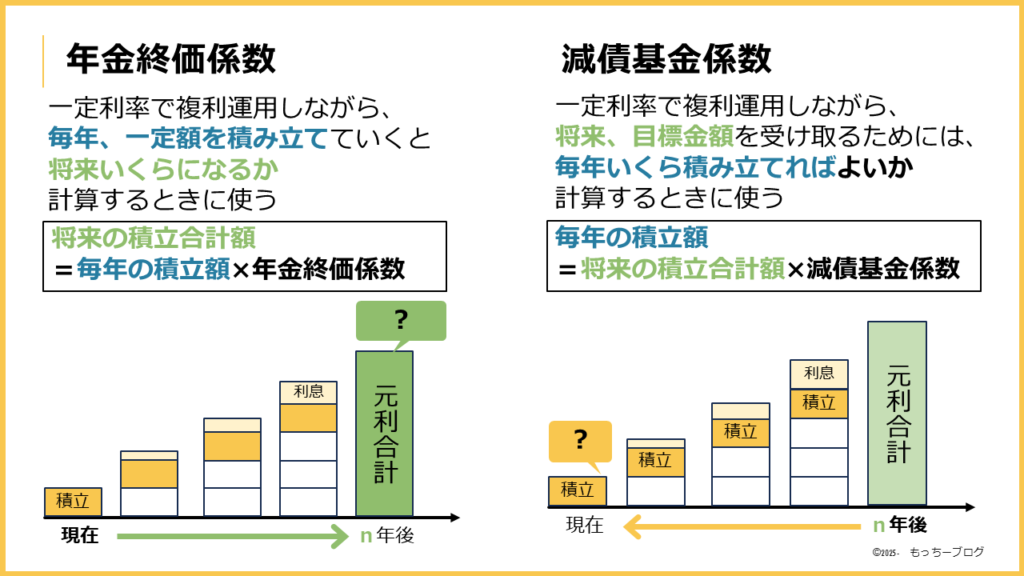 毎年の積立額の試算は、『減債基金係数』と覚えておきましょう